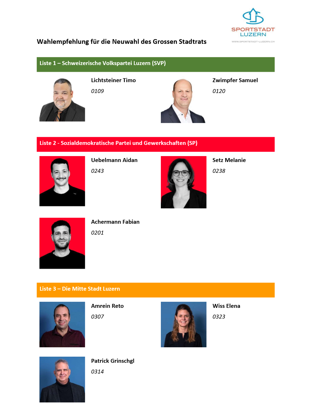 Wahlempfehlung für die Neuwahl des Grossen Stadtrats